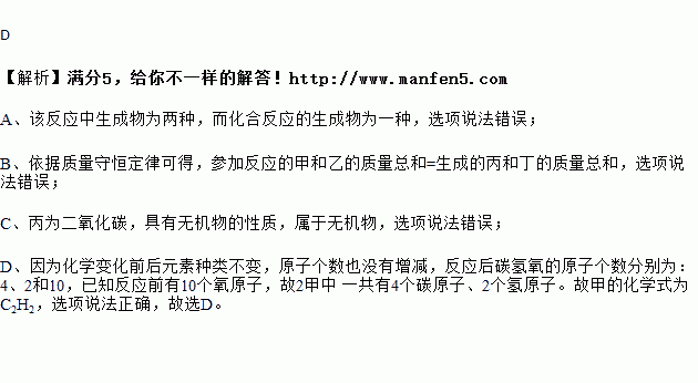 B.反应物甲的质量等于生成物丁的质量