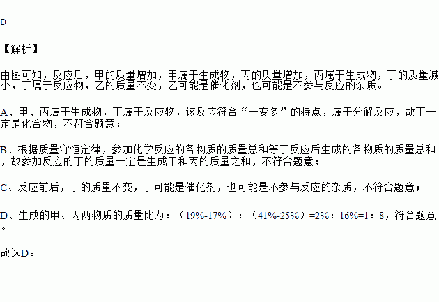在密闭容器内,有甲、乙、丙、丁四种物质,在一定条件下充分混合反应,测得反应前后各物质的质量分数如图所示,下列说法错误的是