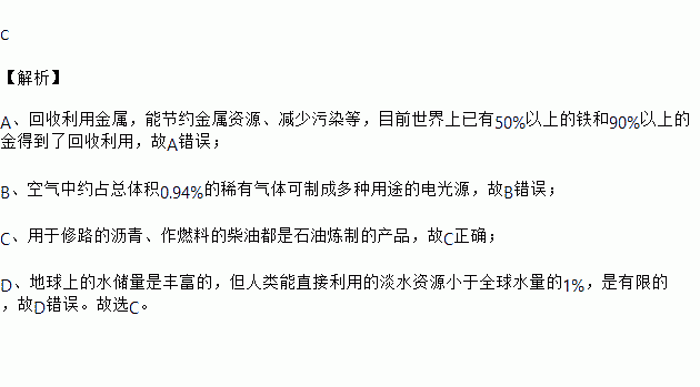 C.用于修路的沥青、作燃料的柴油都是石油炼制的产品