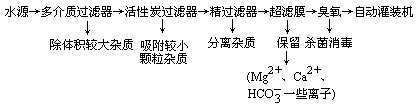 饮用水的生产工艺流程为:水源→多介质过滤器→活性炭过滤器→精过滤器→超滤膜→臭氧→自动灌装机.请尝试解释每一流程的作用,臭氧程序为什么放在灌装程序之前.