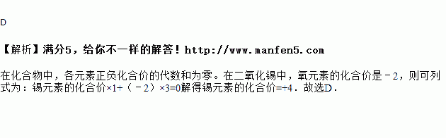 二氧化锡(SnO2)可用作液晶元件电极,其中氧元素为—2价,则锡元素的化合价为( )