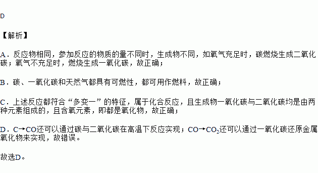 D.C→CO→CO2的转化都只能通过与O2反应来实现