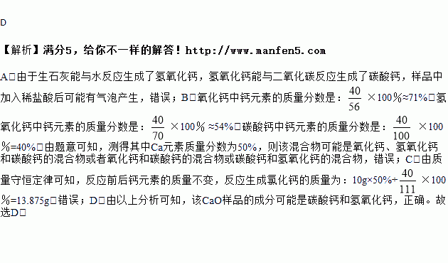 D.该CaO样品的成分可能是Ca(OH)2和CaCO3