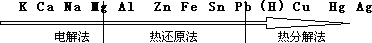 解答:解:一般来说,活泼金属用电解法,较活泼金属用热还原法,不活泼金属如Hg、Ag等用热分解法.