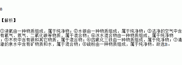 ①液氧②水银③洁净的空气④冰水混合体⑤木炭⑥四氧化三铁⑦清澈的泉水⑧硫粉