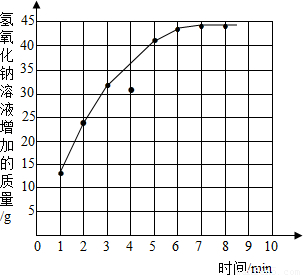 (4)请在如图坐标图中用正确的数据描绘出氢氧化钠溶液增加的质量与时间的变化关系图.