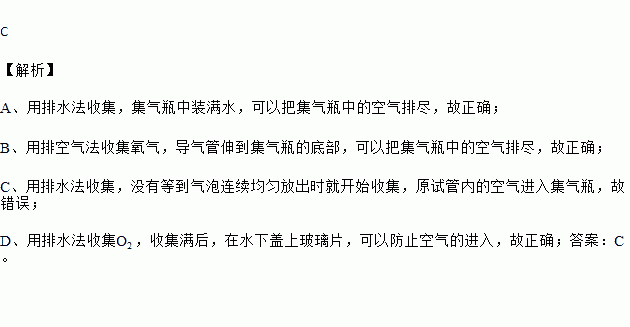 D.用排水法收集O2,收集满后,在水下盖上玻璃片