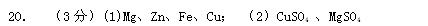 ⑵小童要用其它方法验证铜、铁、镁的活动性顺序,他已经选择了打磨过的铁丝,你认为他还需要选的另外两种溶液是 溶液和 溶液。