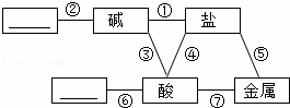 归纳是学习的重要方法,在学习酸、碱、盐后,绘制出如图所示的物质之间的反应关系,(图中短线连接的物质表示能相互反应),请填写下列空白: