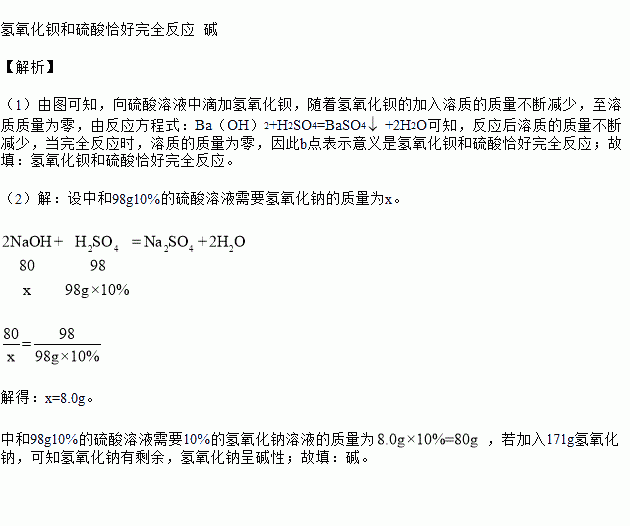 (2)b 点对应的加入 10%的 Ba(OH)2 溶液质量为171g,若改为等浓度等质量的氢氧化钠,中和该硫酸溶液,则反应后溶液呈_____性。