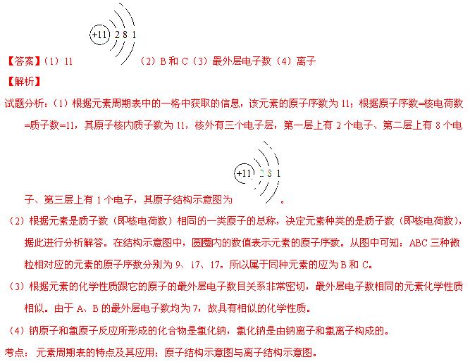 (1)钠元素的原子序数为 ,画出它的