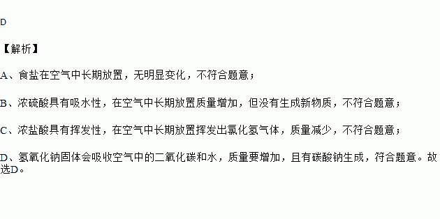 下列物质在空气中长期放置,质量增加并生成新物质的是( )