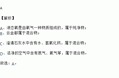 A.液态氧 B.合金 C.澄清石灰水 D.洁净的空气