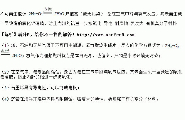 (1)煤、石油和天然气属于_____(选填“可再生能源”或“不可再生能源”)。我国氢能汽车采用了第四代以氢气为燃料的电池技术。氢气作为理想能源前景广阔,氢气燃烧的化学方程式为_____,氢能源的优点是_____(答出一点即可)。