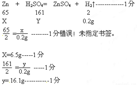 (2)(3)解:设Zn的质量为x,硫酸锌的质量为y………………1分