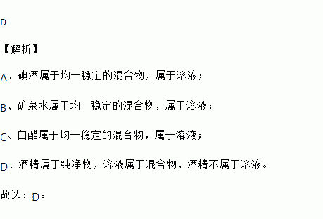 A.碘酒 B.矿泉水 C.白醋 D.酒精