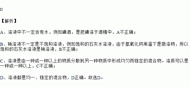 D.溶液都是均一、稳定的混合物