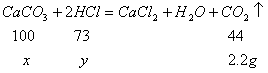 解:大理石中CaCO3的质量为x,稀盐酸中HCl的质量为y