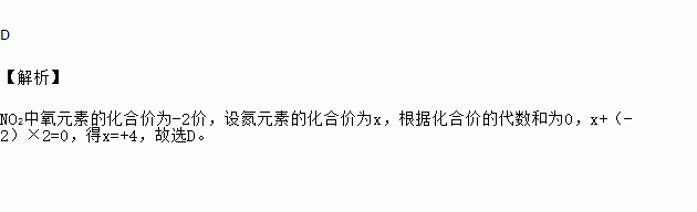 二氧化氮(NO2)是一种棕红色的气体,其中氮元素(N)的化合价为