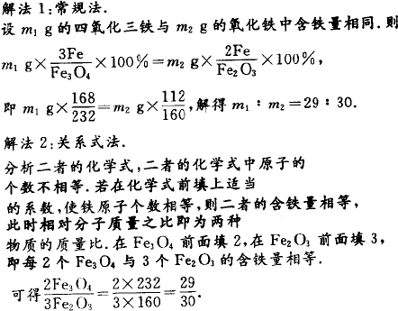 当四氧化三铁与氧化铁的含铁量相同时,两种物质的质量比为________.