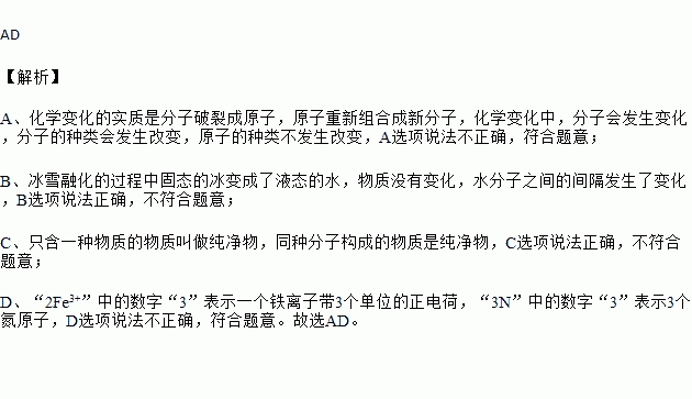 B.冰雪融化的过程中水分子之间的间隔发生了变化
