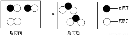 解答:解:依据对图示中相关的分子进行分析可知该图示中反应前后存在相同的分子,所以该图示可转化为:利用该图示中各物质的分子结构可得该反应的方程式是:2NO+O2=2NO2