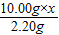 10.00g×x-----241.20g+10.00g-249.00g=2.20g