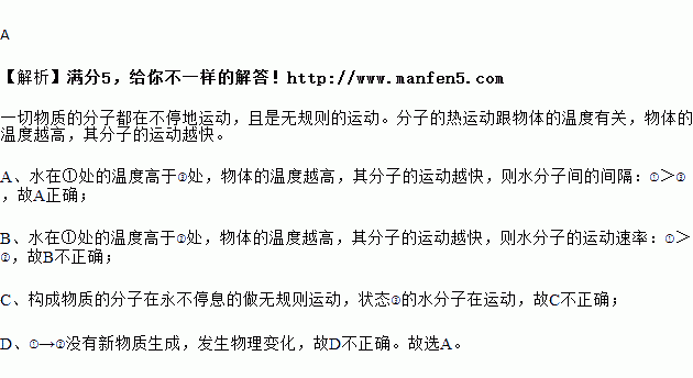 C.状态③的水分子静止不动 D.①→②发生了化学变化
