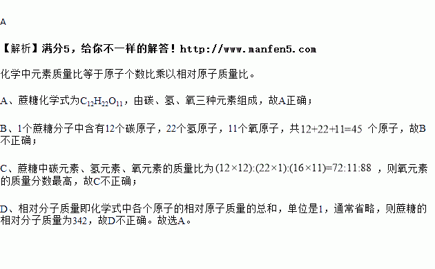 A. 蔗糖是由碳、氢、氧三种元素组成