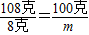 解答:解:由某温度时,碳酸钠的溶解度为8克知在该温度下将8克碳酸钠溶于100克水形成108克碳酸钠的饱和溶液;