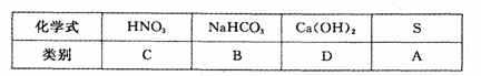| 化学式 | HNO3 | NaHCO3 | Ca(OH)2 | S |