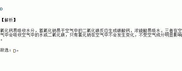 A.氧化钙 B.氢氧化钠 C.浓硫酸 D.氯化钠