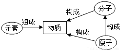 (2)元素组成物质,分子与原子又是构成物质的两种微粒,分子是由原子构成的,利用这些关系可填写好图示.