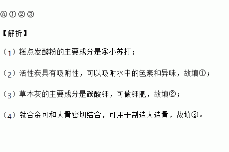①活性炭②草木灰③钛合金④小苏打