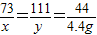 解得:x=7.3g;y=11.1g;z=10g;