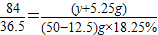 (y+5.25g) (50-12.5)g×18.25%