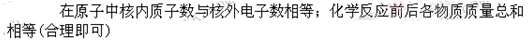 化学知识中有许多的“相等”例如:化合物中元素化合价的正价总数与负价总数的数值相等,请再举两例:(2分)