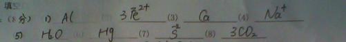 (1)地壳中含量最多的金属元素 ▲ (2)3个亚铁离子 ▲
