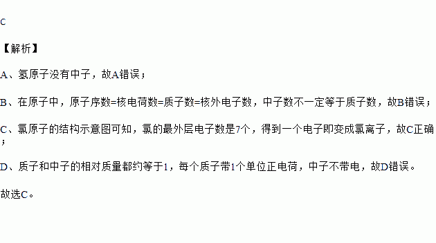 ,在反应中若得到一个电子即变成氯离子(Cl﹣)