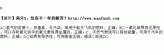 D.用铝制作高压锅是由于铝能在氧气中燃烧