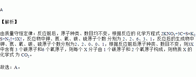 K2S+N2↑+3X↑,根据质量守恒定律推断 X 的化学式为( )