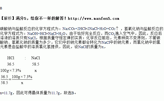 碳酸钠、氢氧化钠和水的混合物若干,与100g7.3%的盐酸恰好完全反应,将反应后的溶液蒸干,可得晶体质量为()