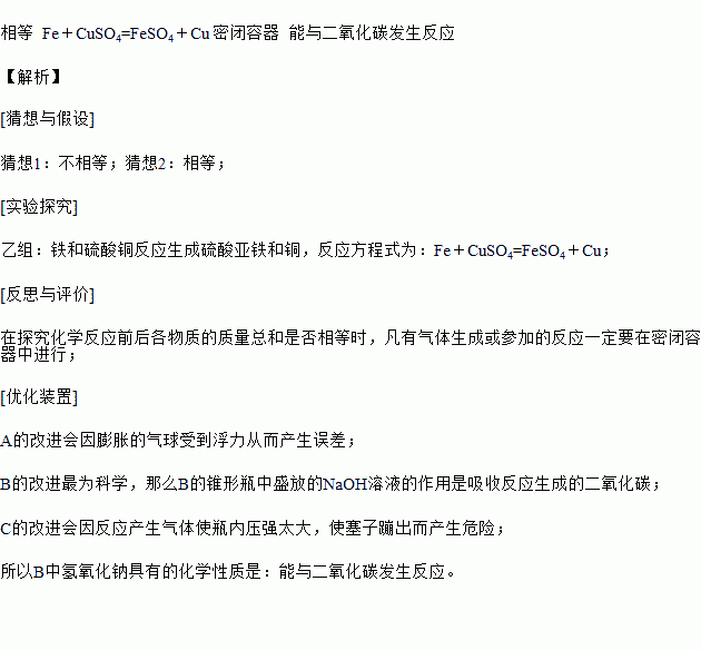 £¨·´Ë¼ÓëÆÀ¼Û£©¾¿¾¹ÄÄÖÖ²ÂÏëÕýÈ·£¿Í¨¹ýÌÖÂÛ£¬Í¬Ñ§ÃÇ·¢ÏÖ¼××éÖÐÓÐÆøÌåÒݳö£¬µ¼ÖÂÖ¸ÕëÏòÓÒÆ«×ª¡£µÃµ½Æôʾ£ºÔÚ̽¾¿»¯Ñ§·´Ó¦Ç°ºó¸÷ÎïÖʵÄÖÊÁ¿×ܺÍÊÇ·ñÏàµÈʱ£¬·²ÓÐÆøÌåÉú³É»ò²Î¼ÓµÄ·´Ó¦Ò»¶¨ÒªÔÚ_____ÖнøÐС£