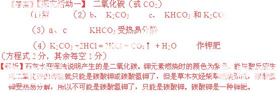 。老师指出:草木灰成分复杂,其中所含其它成分的探究有待同学们后续进行。