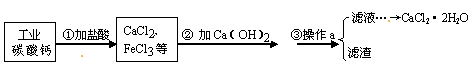 (8分) 医用氯化钙常用于合成药物。以工业碳酸钙(含少量Fe3+等杂质)为原料生产二水合氯化钙(CaCl2·2H2O)的流程如下图所示。