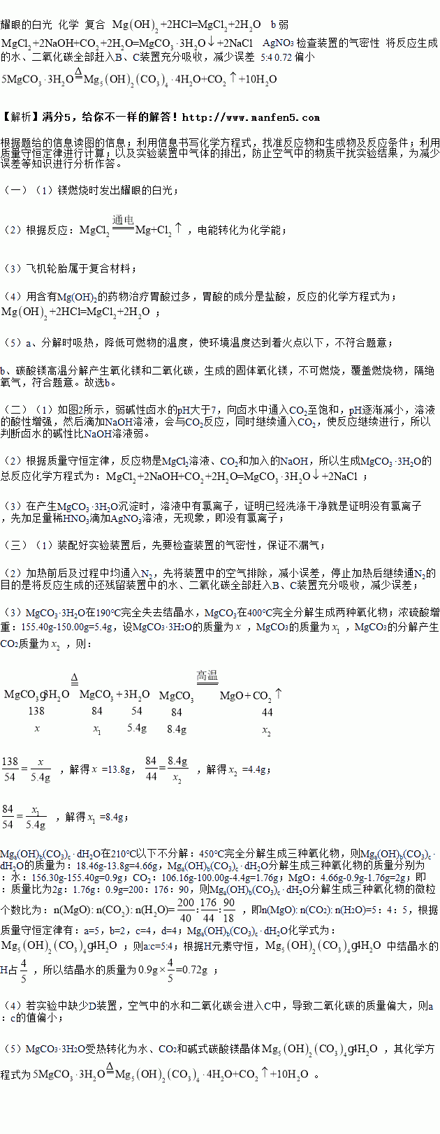 镁及其化合物在生产、生活中有着广泛的应用前景。