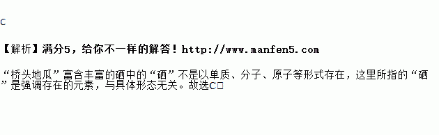 澄迈县桥头镇所产的地瓜香甜软糯口感极佳,“桥头地瓜”富含硒,是防癌养生的健康食品。硒指的是:
