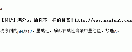 某洗涤剂的pH为12,向其中滴入2滴酚酞试液,溶液的颜色呈( )