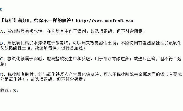 B.用氢氧化钠改良酸性土壤