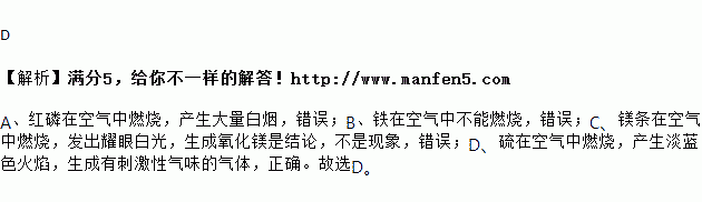 D. 硫在空气中燃烧,产生淡蓝色火焰,生成有刺激性气味的气体